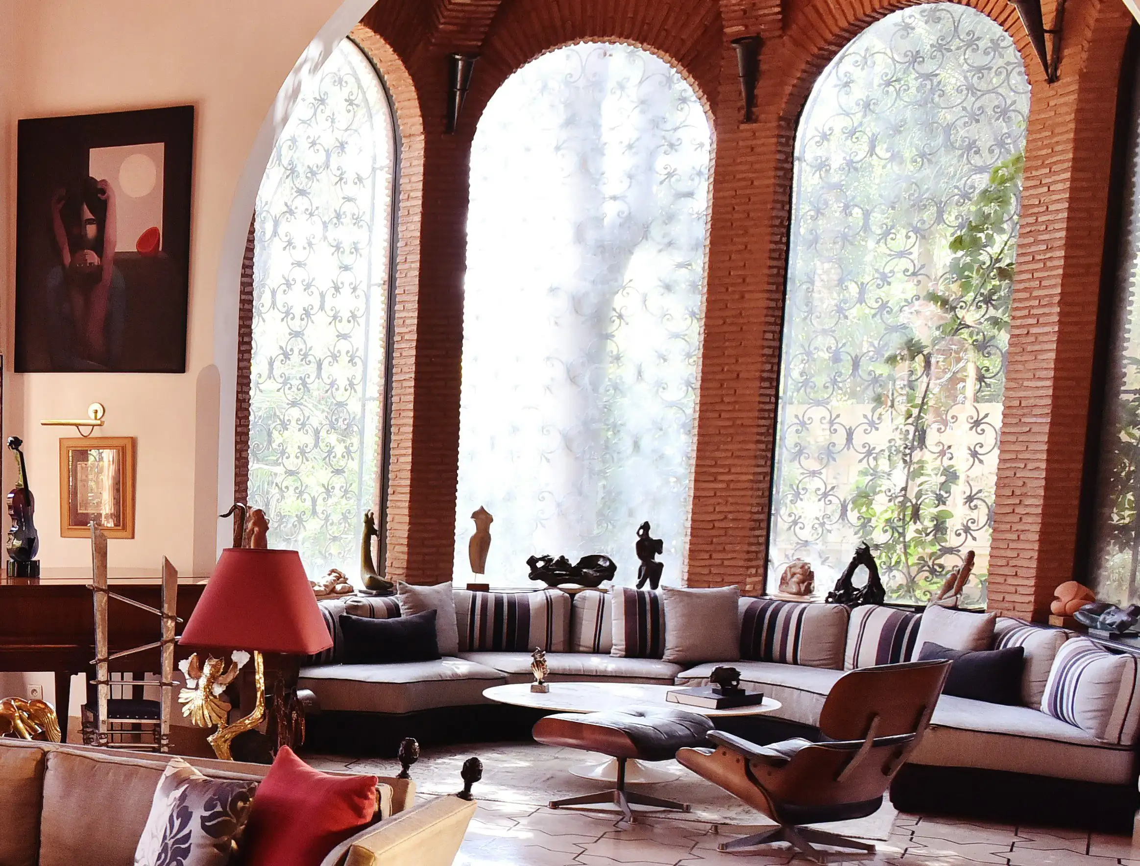 In the heart of the Oasis of Marrakech, the Moorish Palace is a Riad entirely renovated by the interior designer Rita Chraibi. His objective for this Riad was to “tell” and preserve Moroccan art and Moorish architecture’s sublime history. She wanted the design of the Riad, rich in color and the work of Moroccan plaster as well as wood by master artisans of the Moroccan medina. She has preserved the Moroccan heritage in the choice and selection of all materials while keeping the soul of the place and respecting its authenticity. Rita drew her inspiration from the spirit of the site and the treasures of Moorish Arab architecture to preserve the authentic character of this Riad.