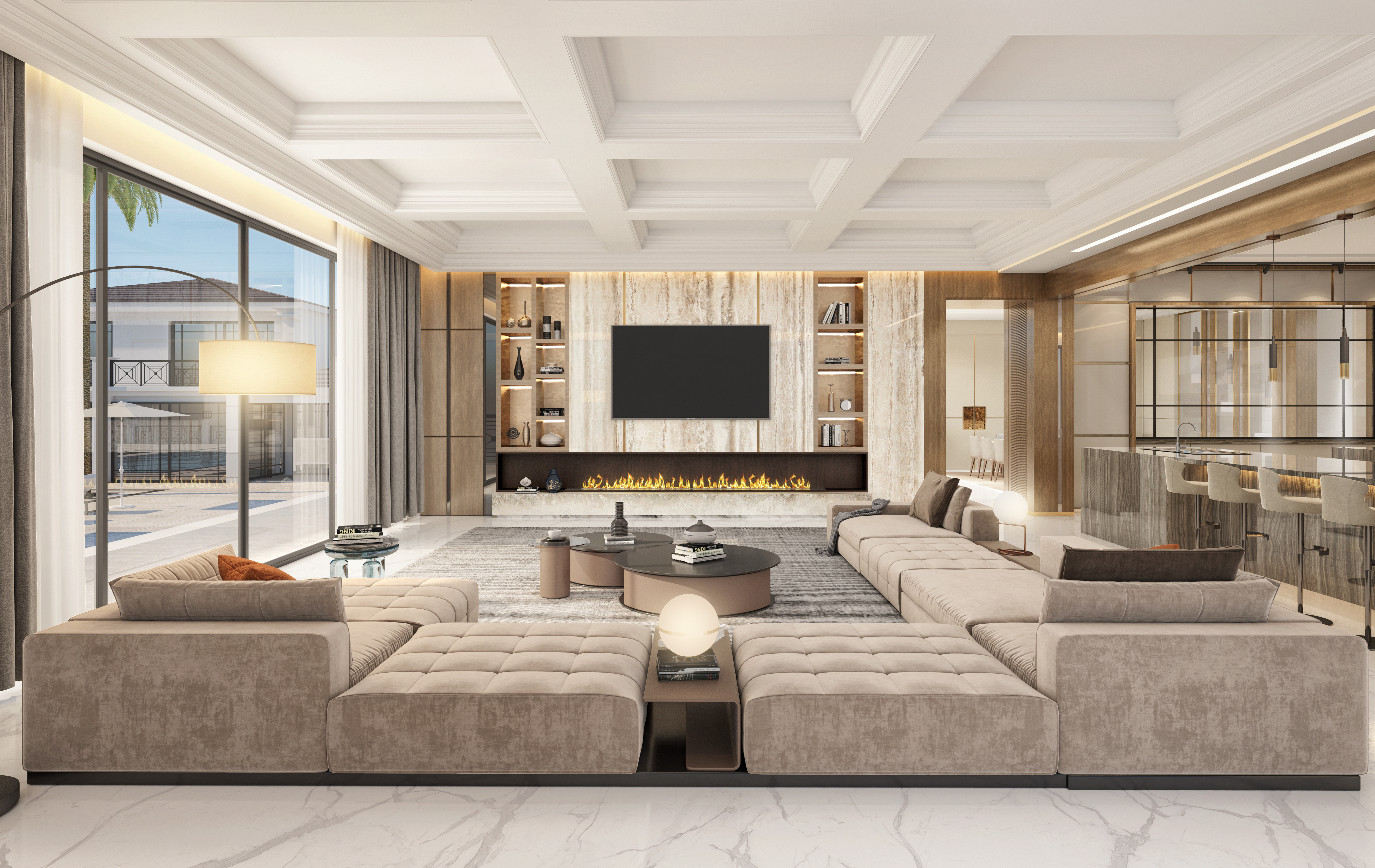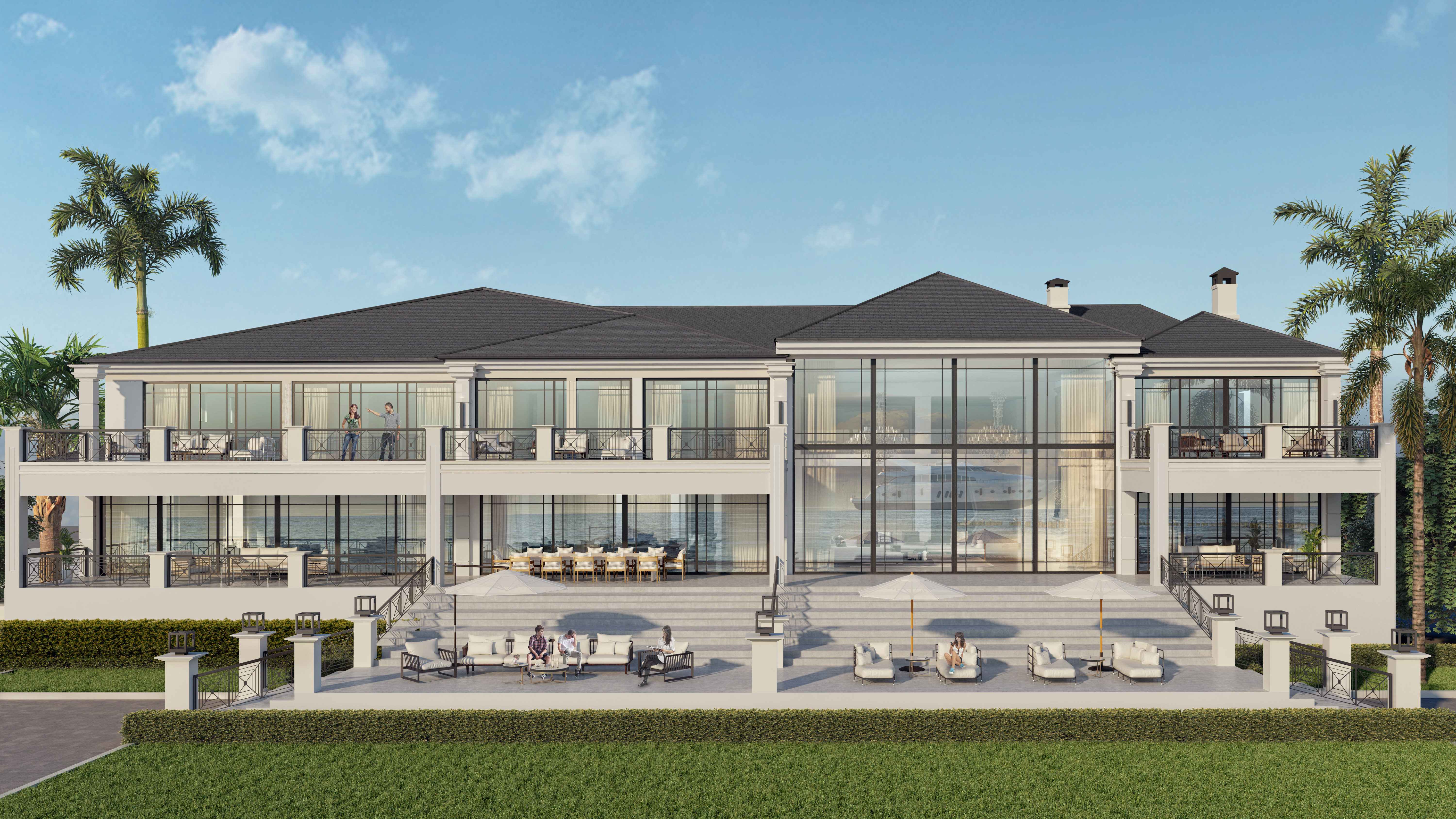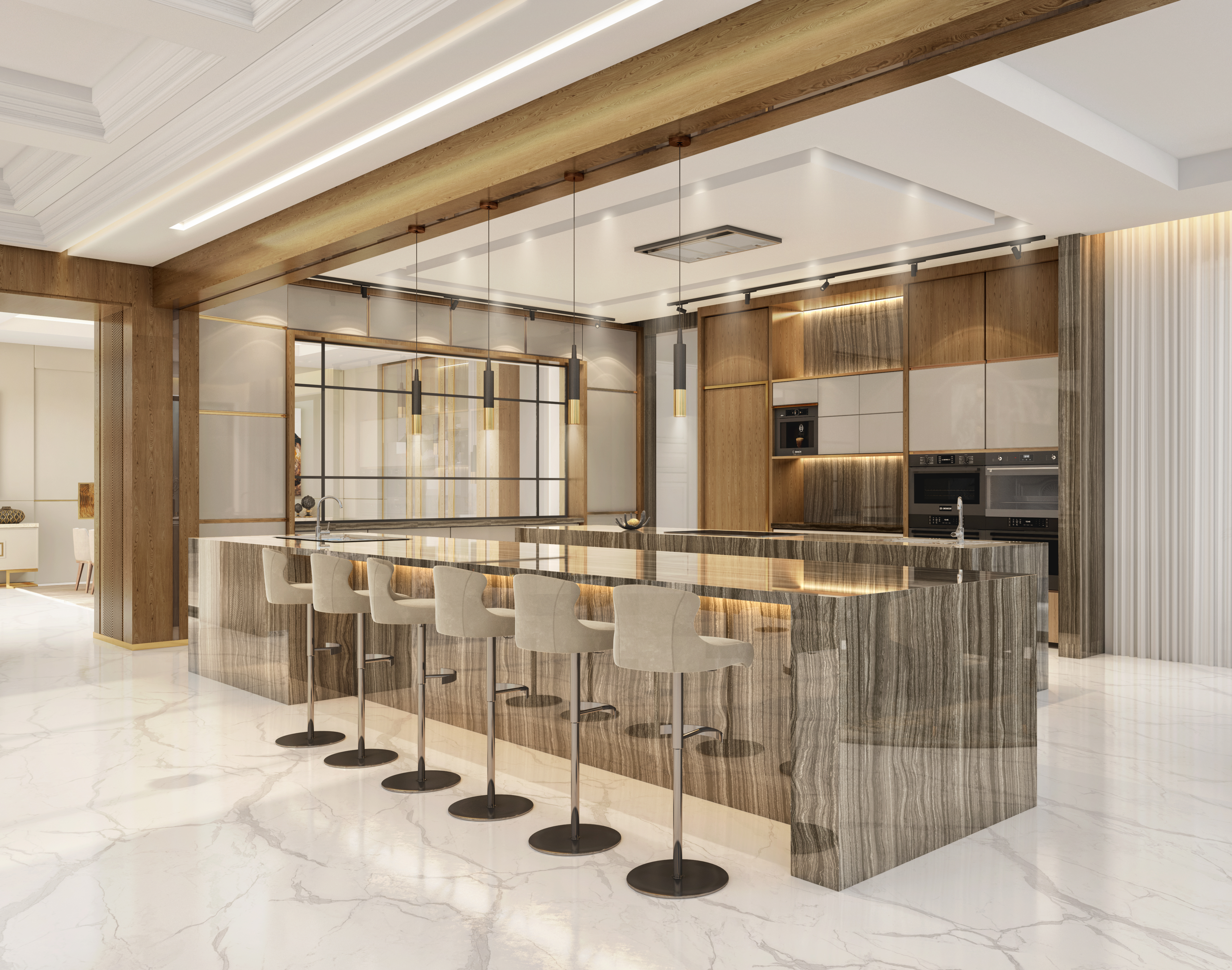 Rita Chraini unveils a full-scale renovation of a 7,000 sq ft penthouse at Artes Surfside, Miami—a residence where refined French sophistication is seamlessly blended with the serenity of oceanfront living. At the heart of the design lies a dramatic onyx bar with bespoke backlighting, creating a luminous focal point that anchors the main living space. Overlooking it, a handcrafted crystal chandelier by Sans Souci Lighting cascades gracefully through the staircase, functioning as both sculpture and light installation. Rita curated a selection of exceptional furnishings from Fendi Casa, Minotti by DDC, and Roche Bobois, shaping an interior that feels timeless, polished, and meticulously tailored. A standout moment is the iconic Louis Vuitton Cocoon hanging chair from the Objets Nomades collection—an avant-garde piece that introduces both artistry and movement, perfectly framing the penthouse's sweeping views of the Atlantic. The result is a residence of rare harmony—architectural precision, luxurious materials, and curated design elements brought together to create a coastal sanctuary of unmistakable elegance.